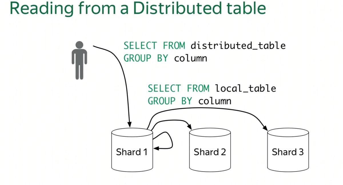 上两张图是 ClickHouse Scatter-Gather 执行框架的示意。